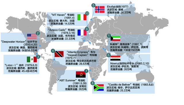 从石油成为全球主要燃料来源之后,以海运为主的石油运输就不断面临大大小小的事故,有天气恶劣导致的事故,也有游轮疏于维护的事故,还有迷航或者战争等,下图为全世界十大石油泄漏事故!