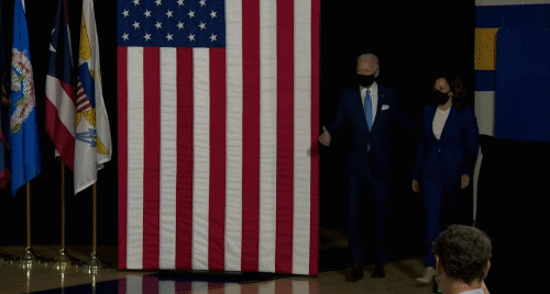 两人的「首秀」在拜登家乡特拉华州威尔明顿市一中学体育馆举行。不同于以往的竞选集会,受新冠肺炎疫情影响,当天现场并无支持者出席,拜登、哈里斯及工作人员、媒体等均佩戴口罩、保持「社交距离」。