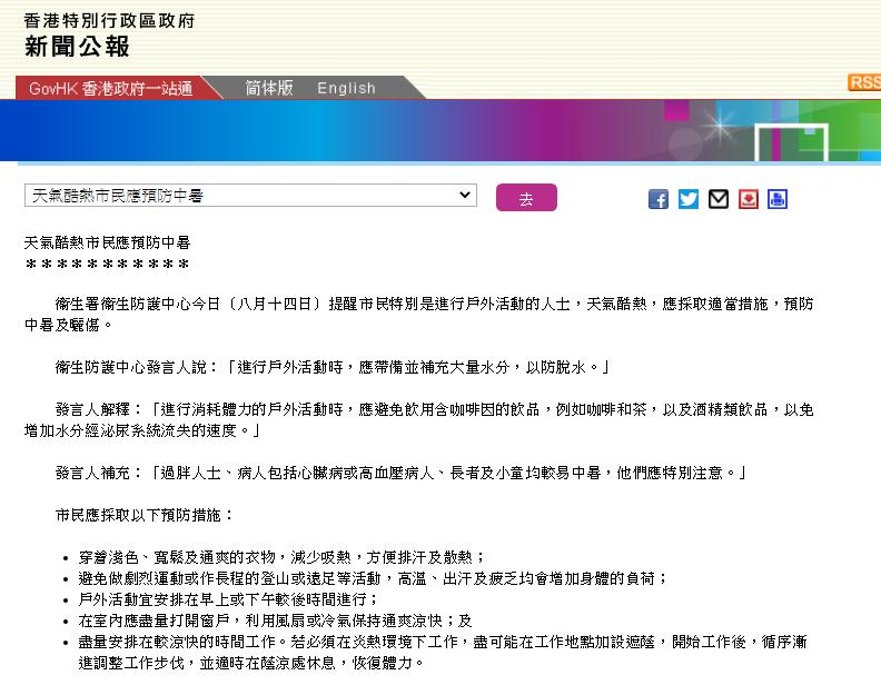 天文台在今日上午9時15分發出酷熱天氣警告,預料今明兩日本港天氣酷熱,市民應慎防中暑。