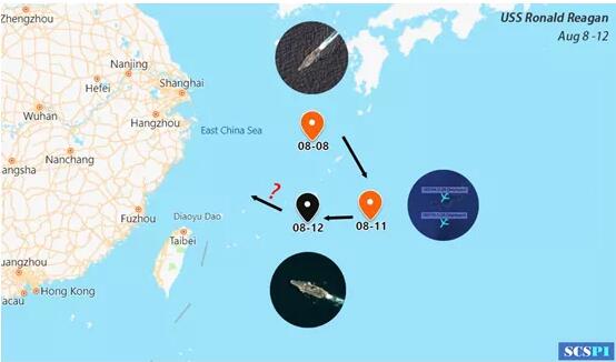 “南海战略态势感知计划”8月13日发布“里根”号航母活动轨迹图