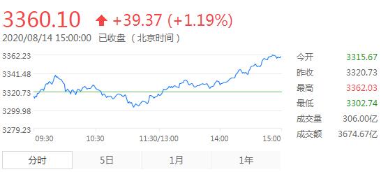 截至收盘,沪指涨1.19%,报3360.10点,成交额为3674.67亿元(上一交易日成交额为3871.62亿元);深成指涨1.49%,报13489.01点,成交额为4822.90亿元(上一交易日成交额为4943.30亿元);创指涨1.76%,报2668.71点。