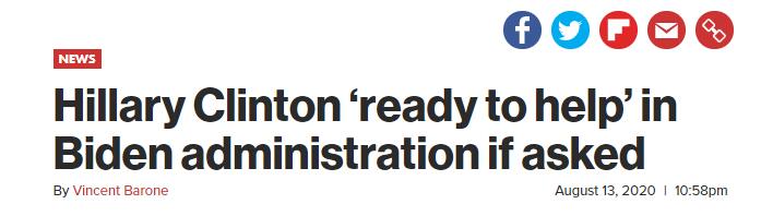 希拉里说:“现在我还没有办法考虑政府的事情,我准备尽一切可能为拜登获胜提供帮助,民主党需要尽可能多的选民投票,我认为这是每个美国人应该做的事,以便帮助我们的国家。”