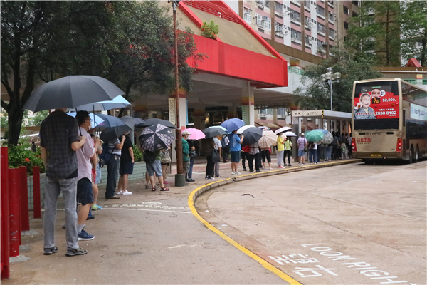 風球取消後車站出現候車上班人龍。記者馮瀚文攝