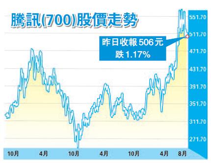 金融科技及企業服務業務第二季收入增長30%至299億元,主要反映日均交易量和單筆交易金額增加帶動商業支付收入的增長,理財平台收入的增長,以及雲服務收入的增長。網絡廣告業務第二季收入增長13%至186億元,其中社交及其他廣告收入增長27%至153億元,媒體廣告收入則下降25%至33億元。整體業績表現強勁,業務前景樂觀,可趁近日調整吸納。可考慮於500元(港元,下同)水平吸納,上望目標560元,跌穿470元止蝕。