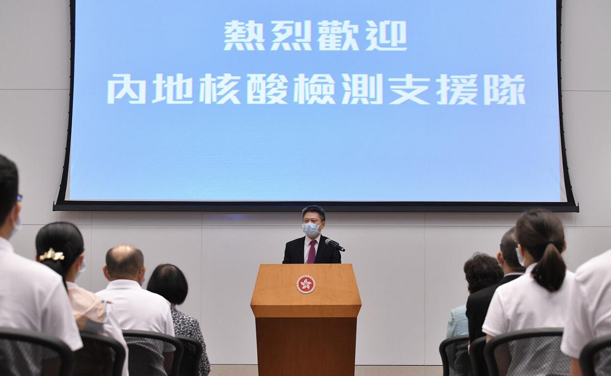 陳肇始和曾國衞歡迎內地核酸檢測支援隊