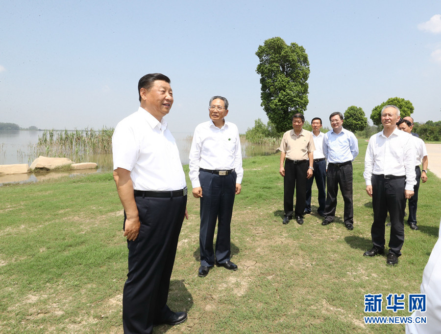 19日上午,习近平在马鞍山市薛家洼生态园,察看长江水情水势和岸线生态环境。 新华社