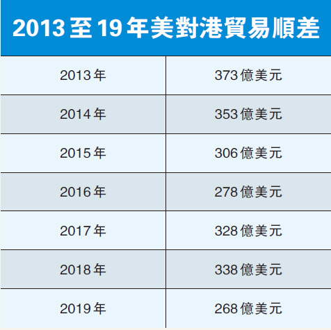 讓我們看看AmCham近年表現及其自身出台的客觀數據(如表)。事實上,香港出口到美產品佔其總出口少於0.1%,大部分貨物屬轉口;而香港是美國商品重要消費市場,在美所有貿易夥伴中能做到最高順差的就是香港!尤其對於美國農業和製造業,出口香港至關重要。