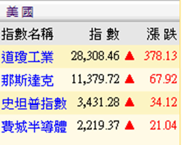 美東時間周一,美股三大指數集體收漲,道指漲1.35%,報28308.46點;納指漲0.6%,報11379.72點;標普500指數漲1.00%,報3431.28點。納指和標普500指數續創歷史新高。