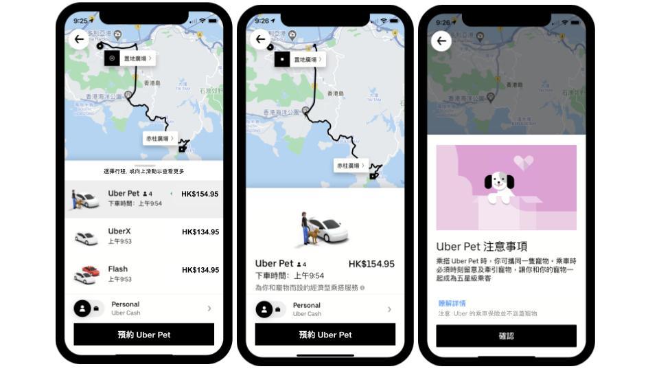 因特殊需要攜同服務性動物的乘客,例如導盲犬,毋須支付額外費用。繼美國、澳洲及新西蘭後,香港是亞太地區第二個推出Uber Pet的市場。