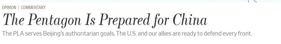 美國國防部長埃斯珀(Mark Esper)当地时间24日在美媒《華爾街日報》发表题为《五角大楼已经为中国做好了准备》的文章。
