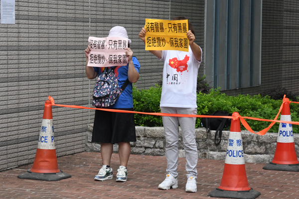 一批市民在法院外舉起反對黑暴標語。記者蔡啟文攝