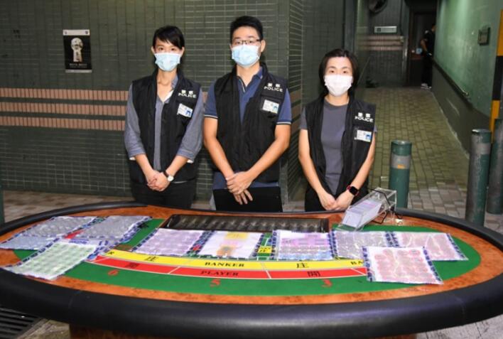 行動中,警方还檢獲兩張百家樂賭枱、600副啤牌、價值約60萬元的籌碼及約3萬元賭款。