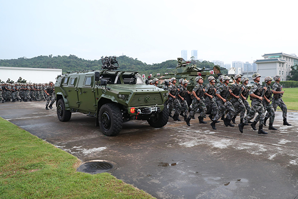 駐澳門部隊表示,堅決聽從黨中央、中央軍委指揮,堅決貫徹「一國兩制」方針,堅決貫徹澳門特別行政區基本法、駐軍法,堅決維護國家主權、安全、發展利益,有效履行澳門防務職責,為維護澳門繁榮穩定做出新的更大貢獻。(图源:中新社)