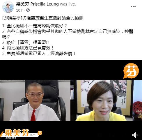 盧寵茂指香港有醫護人員以「有色眼鏡」看內地生產的試劑,認為社會大眾,尤其專業人士不應為反而反,將防疫政治化,製造恐慌,呼籲市民不要參與全民檢測,變相會令政府抗疫再次失敗。