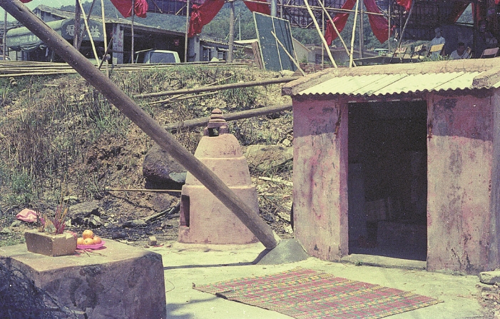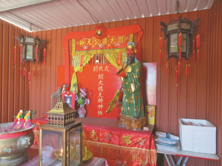 關帝像1月份時已搬往臨時神棚,兩旁高掛木做宮燈,而石碑神位因拆廟時有些破損,已另放安全地方。