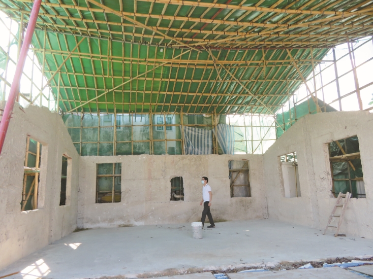 由於工程不小,需要15個技工,去年中入紙入境處申請赴港工作,年尾獲得核准,「我們1月8日已將廟內關公神像搬往隔籬的臨時神棚,兩盞木做宮燈亦一同掛起,另一塊關大德元帥石碑亦拆了下來,本港工人隨即將廟宇拆走大部分,好等潮州工人施工。」但2月起疫症降臨,3月動工算盤打不響,潮州技工赴港暫時無期,今年西貢區潮僑街坊盂蘭勝會亦沒有木偶戲、經師誦經等儀式,只保留拜神及燒衣的簡單儀式。