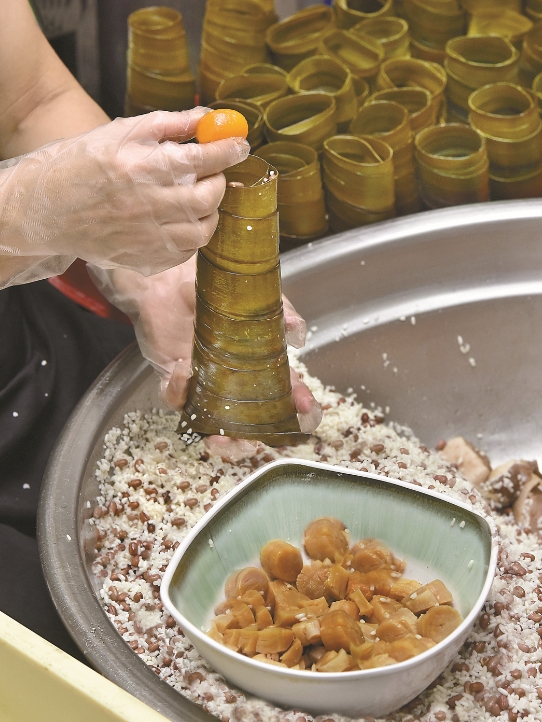 蘆兜糉除糯米、紅豆、腩肉及鹹蛋黃。