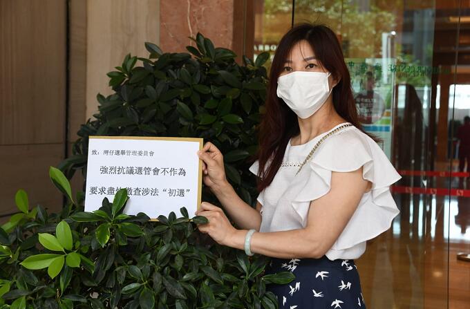 有市民到灣仔選舉管理委員會請願,抗議選管會不作為,要求盡快徹查反對派所謂的「初選」。