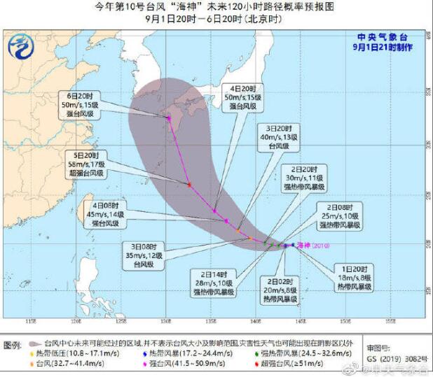 同时,今年第10号颱風“海神”也于9月1日晚在西北太平洋洋面生成。王志华表示,预计“海神”将以每小时15公里左右的速度向西偏北方向移动,强度逐渐加强,最强可达超强颱風级(每秒55至60米),并向日本西南部到韩国南部一带沿海靠近,是否会对东北地区带来风雨影响还有较大不确定性,需要密切关注。