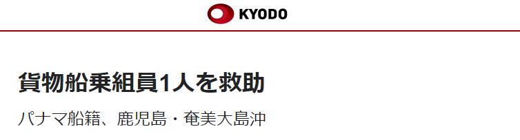 报道称,这艘货船於东京时间2日凌晨1时45分左右发出遇险信号,当时该船位於奄美大岛以西185公里左右海面。日本海上保安厅派出一艘巡视船前去搜救。