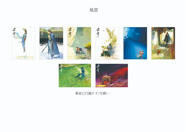 今次發行的一套6枚郵票、兩枚小型張、首日封及套摺等相關郵品,設計以聶風、步驚雲及無名為首的人物作主體,並由馬榮成親自挑選8幅經典作品印到郵票及小型張上,每幅作品皆集中於人物的意態及景致的描寫,而當中《天下起風雲》及《唯我傲迎風》乃馬榮成的最愛。