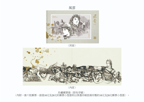 今次,馬榮成自2015年完成《風雲》漫畫創作後,特別再執畫筆親自繪畫《珍藏郵票册》,全球限量發行5000套。郵票冊內除了附有一套6枚郵票及兩款郵票小型張外,馬榮成更用水墨繪畫方法將部分經典場面重新演繹。郵票冊內亦另附兩張以黑墨印刷技術印製的$10及$20郵票小型張。郵票冊每人限購兩本。