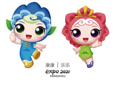 扬州世园会吉祥物「康康·乐乐」造型活泼、形象可爱,有机融合了传统民族服饰和大运河、芍药花的扬州元素,代表了「绿色城市,健康生活」的办会主题以及对儿童健康、快乐成长的共同关注,并宣示合力建设美丽、健康中国扬州样板的美好愿景。