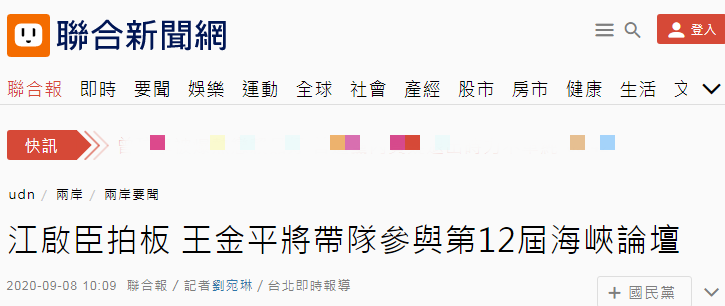 第十二届“海峡论坛”将于9月19日在福建省厦门市举行,据台湾《联合报》8日报道,国民党主席江启臣决定派代表团出席,敦请前“立法院院长”王金平担任国民党代表团团长,并由国民党秘书长李乾龙担任副团长。