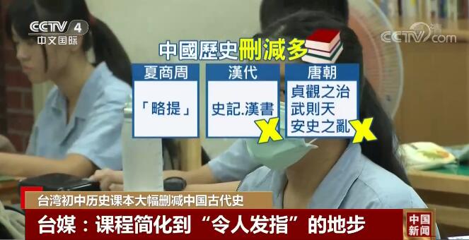 据观察者网综合「中时新闻网」、「联合新闻网」等台媒9月8日报道,台湾初中二年级所用的新课纲历史教材中,中国古代史部分被大幅删除,从商周到唐朝2400年的历史「仅用1600字讲完」,三国等历史时期只字未提。