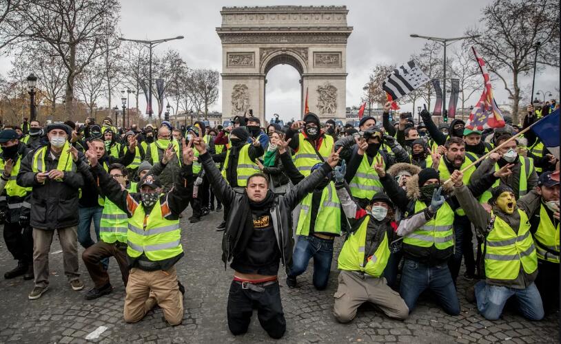 「黃背心」們在巴黎街頭抗議。 美聯社