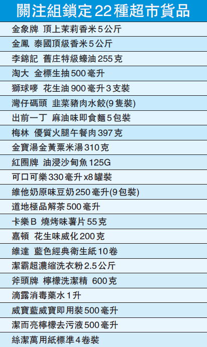不過,民建聯上月起調查發現各大超市或網上超市的貨品價格不減反升,遂於昨日宣布成立「超市價格關注組」由民建聯觀塘區議員顏汶羽、屯門區議員賴嘉汶、中西區社區主任劉天正及南區社區主任張偉楠化身「超市格價專員」,選定22種日常用品的售價長期監察。