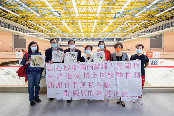 為期14日的香港普及社區檢測計畫將於今晚8時圓滿結束,經民聯多名成員於今日較早時份分批到中山紀念公園體育館的臨時氣膜實驗室「火眼實驗室」,向支援隊人員予以慰問,感謝他們的無私付出。