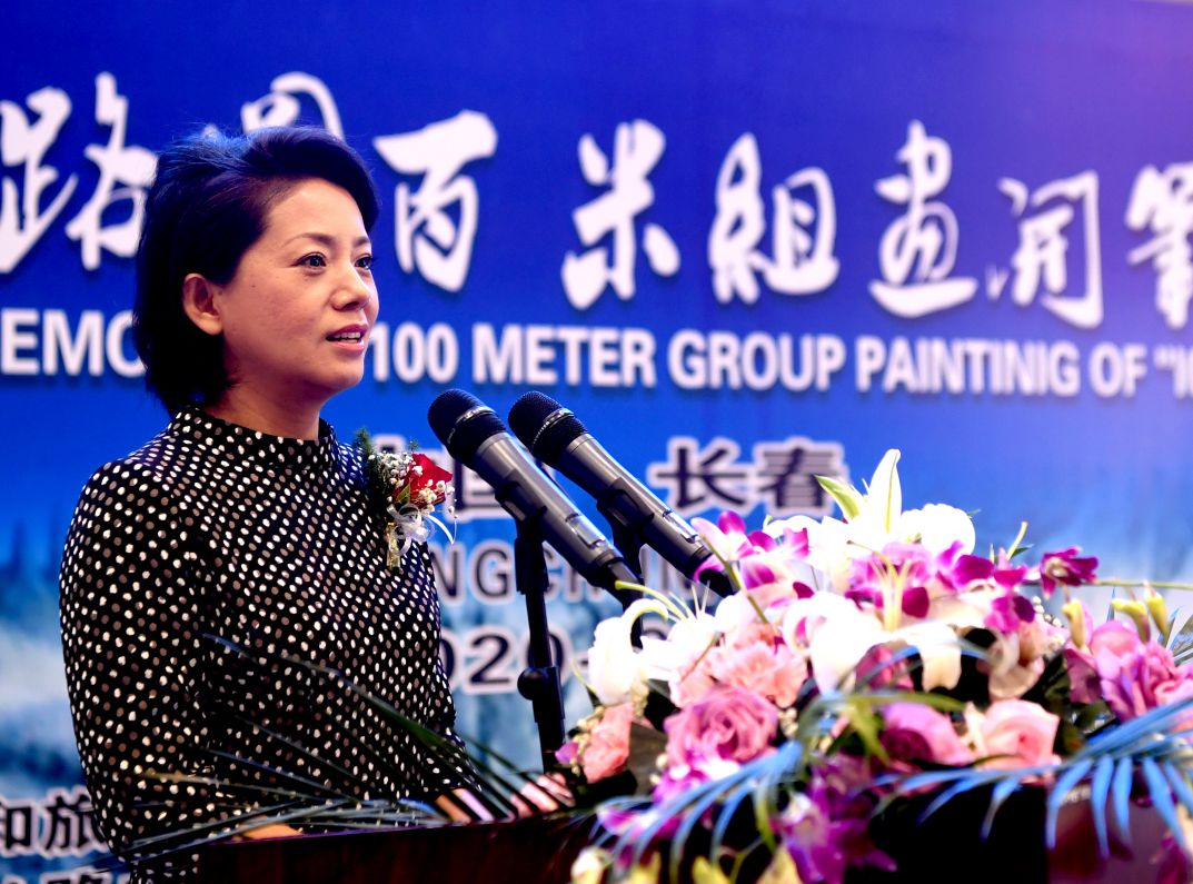 吉林省文化和旅遊廳廳長楊安娣表示,冰雪絲路不僅僅是吉林的冰雪絲路,我們是以吉林省為核心區,立足東北地區,面向東北亞,着眼一帶一路沿線冰雪國家,開展的一個廣泛的合作與交流。今天我們在這裡相聚,以雪為題,以畫為媒,以筆會友。冰雪絲路百米組畫的創作不僅僅是一個藝術上的深刻闡釋,文化上的廣泛交流,也更是對於冰雪絲路內涵的進一步的挖掘和整理。在冰雪絲路的探索、研究、建設的路程上,未來還有更大的空間,更多的問題等着我們去探索、去研究、去發掘、去整理、去傳播,也希望以開筆儀式為契機,能夠更好地描繪歷史,更好地探索未來。