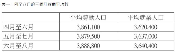 同樣地,由於少部分的畢業生會在八月才進入勞動巿場,所以八月相對五月,同樣會是:勞動人口增加、就業人口增加及失業人數增加。