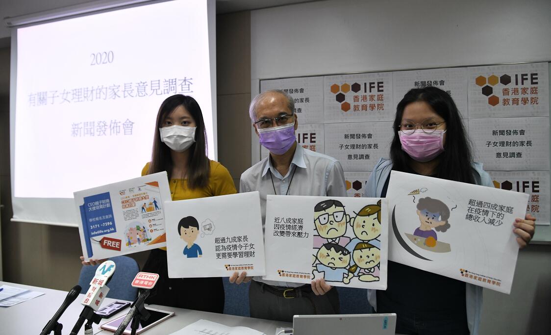 新冠肺炎疫情影響不少人收入。香港家庭教育學院20日公布一項有關子女理財的家長意見調查,結果顯示超過四成家庭疫情下的總收入減少、近八成家庭因疫情經濟改變帶來大壓力,更有超過九成家長認為疫情令子女更需要學習理財。學院建議家長可持開放的態度告訴子女家庭的經濟困難,父母亦能向子女傾訴以減低壓力,有助家庭保持和諧。