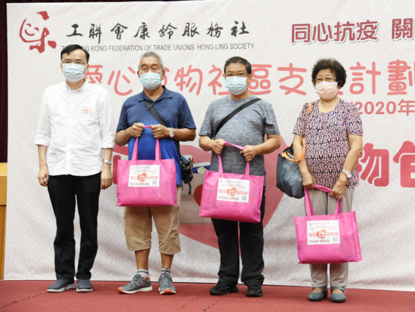 新冠肺炎疫情持續了大半年,本港亦曾經出現糧食、防疫物資及日用品搶購潮,令不少獨居和雙老長者陷入焦慮恐慌。為解長者及失業工友的苦困,工聯會康齡服務社推出「愛心食物社區支援計劃(2020年)」,將分階段向長者及失業市民合共派發一萬個「愛心食物包」,向有需要人士送上物資和關懷。工聯會會長吳秋北表示,期望香港能夠盡快重啟經濟活動,工人就業情況得以改善,市民生活早日回復正常。