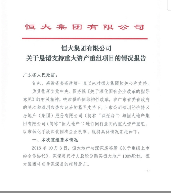 昨日,網上流傳一份向廣東省人民政府發出的「關於懇請支持重大資產重組項目的情況報告」,內容提及如果恆大(3333)地產不能按時完成重組,「可能導致其現金流斷裂」,進而引發一連串違約。