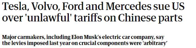 入稟的包括電動車生產商Tesla、福特汽車及零售集團Target等。他們指特朗普政府並無按照行政程序,以及因徵收關稅而令美中貿易戰加劇。