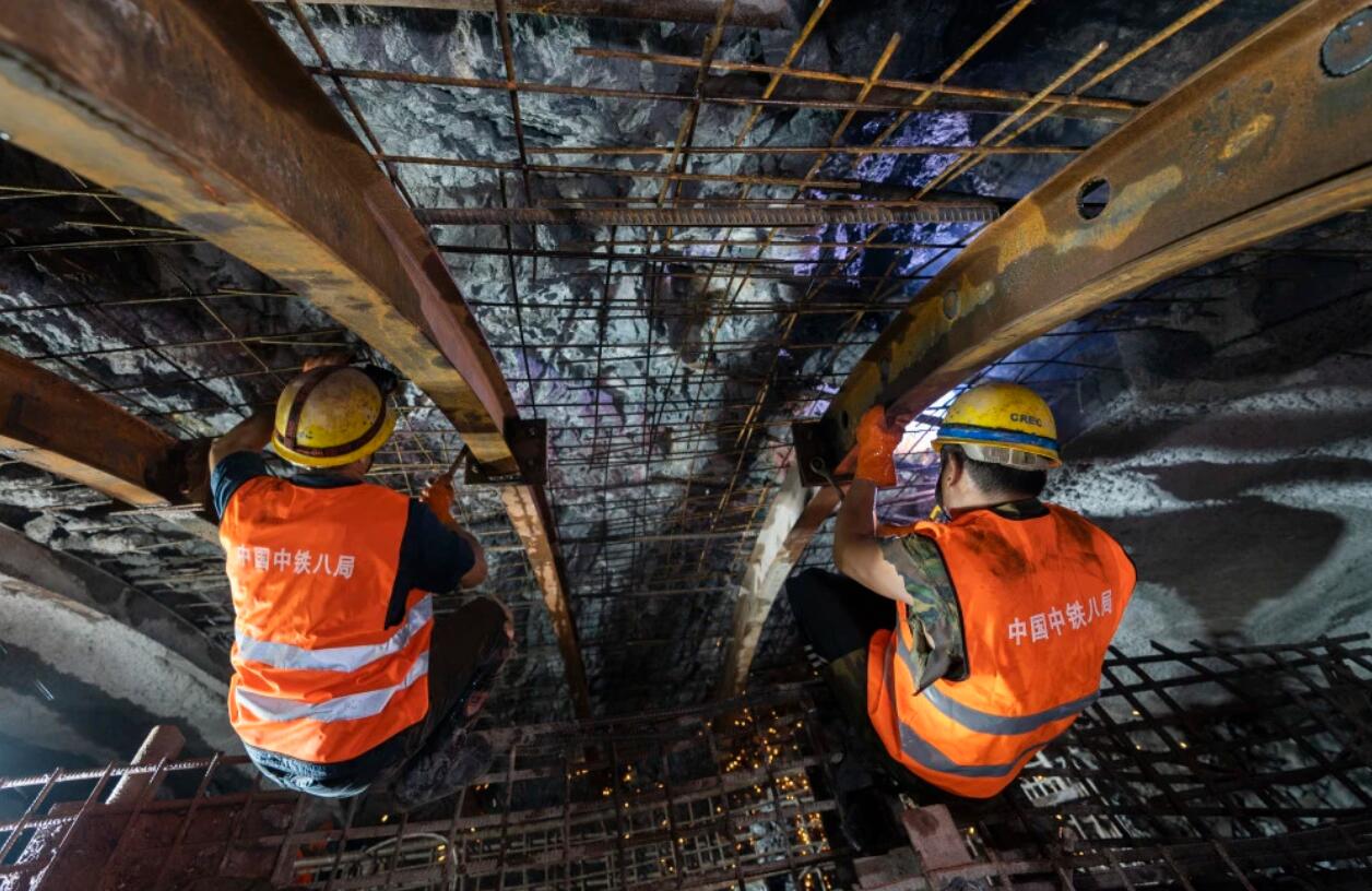 9月21日,工人在老挝乌多姆赛省孟雅县的中老铁路福格村隧道建设现场施工。中国中铁八局承建的中老铁路福格村隧道9月22日贯通。这是中老铁路全线最后一条长隧道。(新华社发,潘龙柱摄)