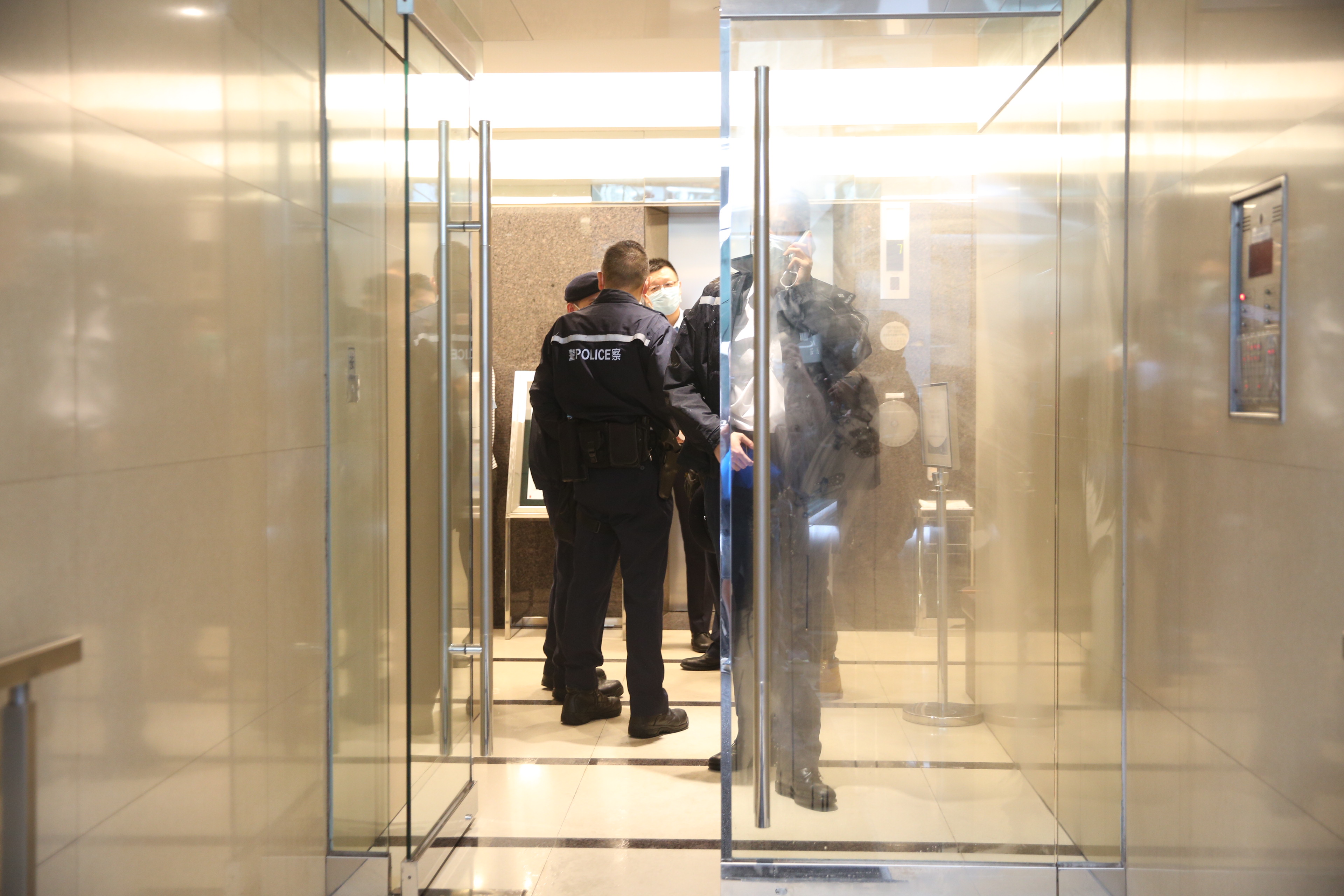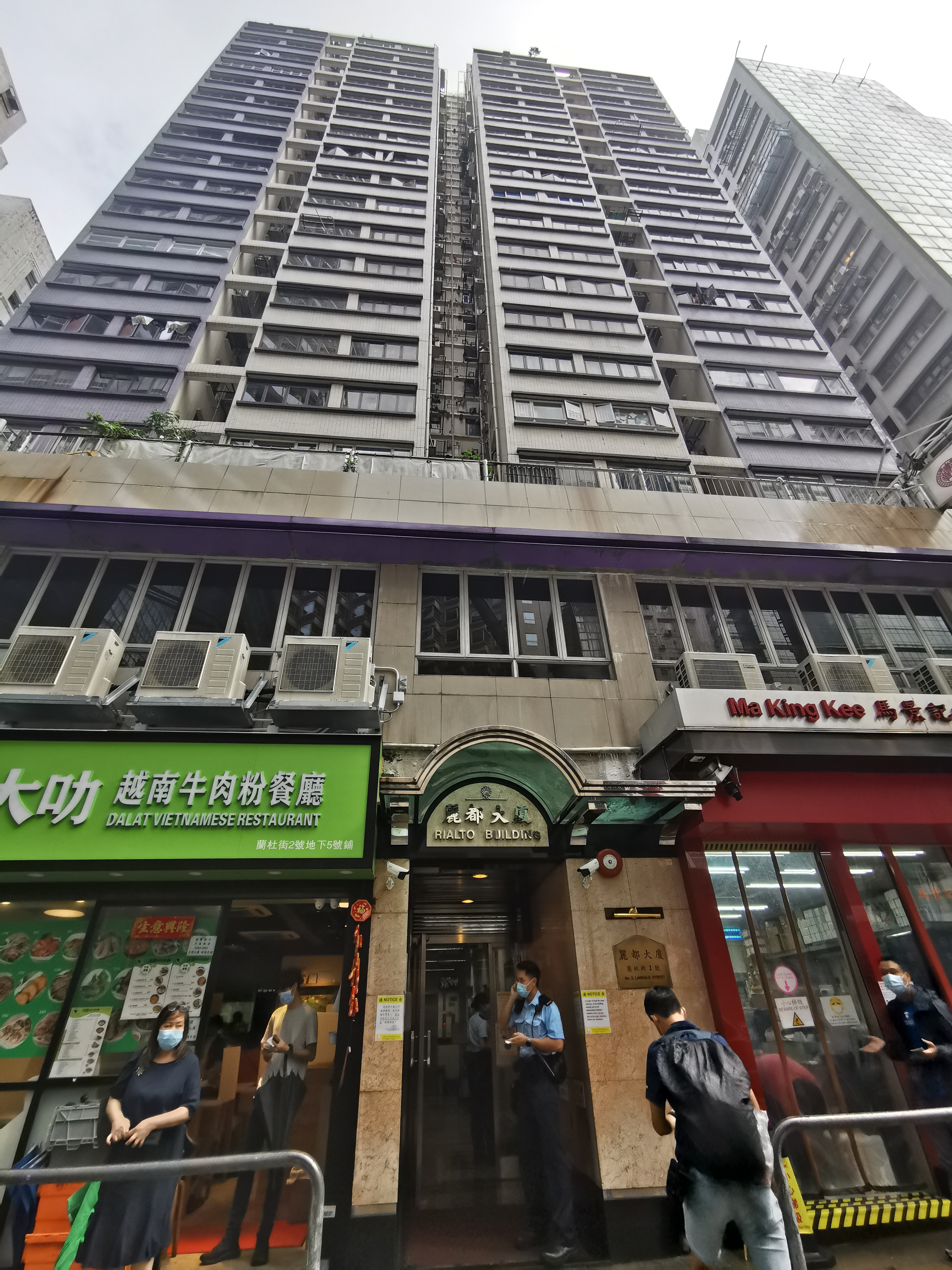 圖片說明:警方到蘭杜街和船街涉事大廈調查。