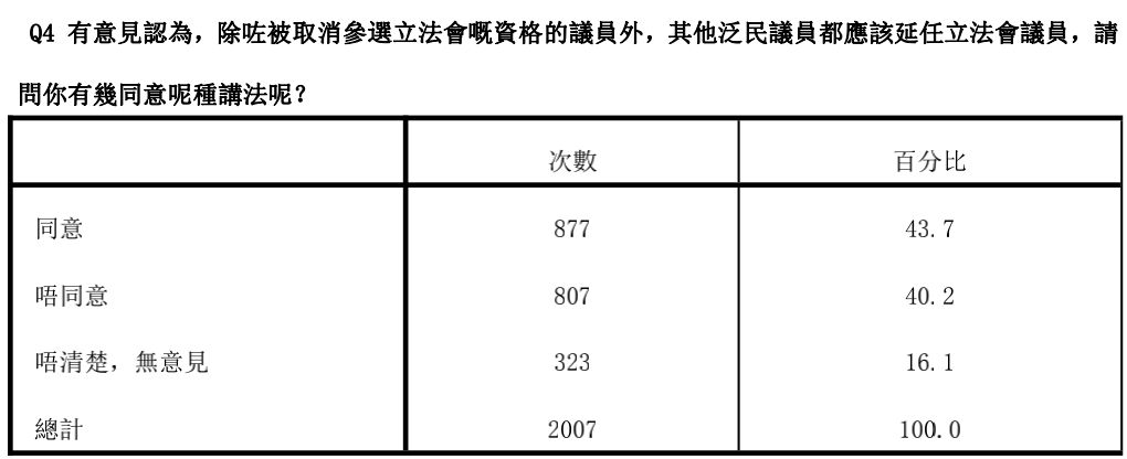 另外,參與是次所謂「民意」調查的包括7名民主黨議員、5名公民黨議員、工黨議員張超雄、議會陣線議員毛孟靜、社福界議員邵家臻。除了公民黨議員陳淑莊外,14人公布會延任一年。至於沒有參與民調的街工議員梁耀忠都稱會留任;專業議政議員梁繼昌、葉建源、莫乃光、李國麟也會延任;熱血公民議員鄭松泰較早前已表明會延任,決定延任的反對派議員有20人。