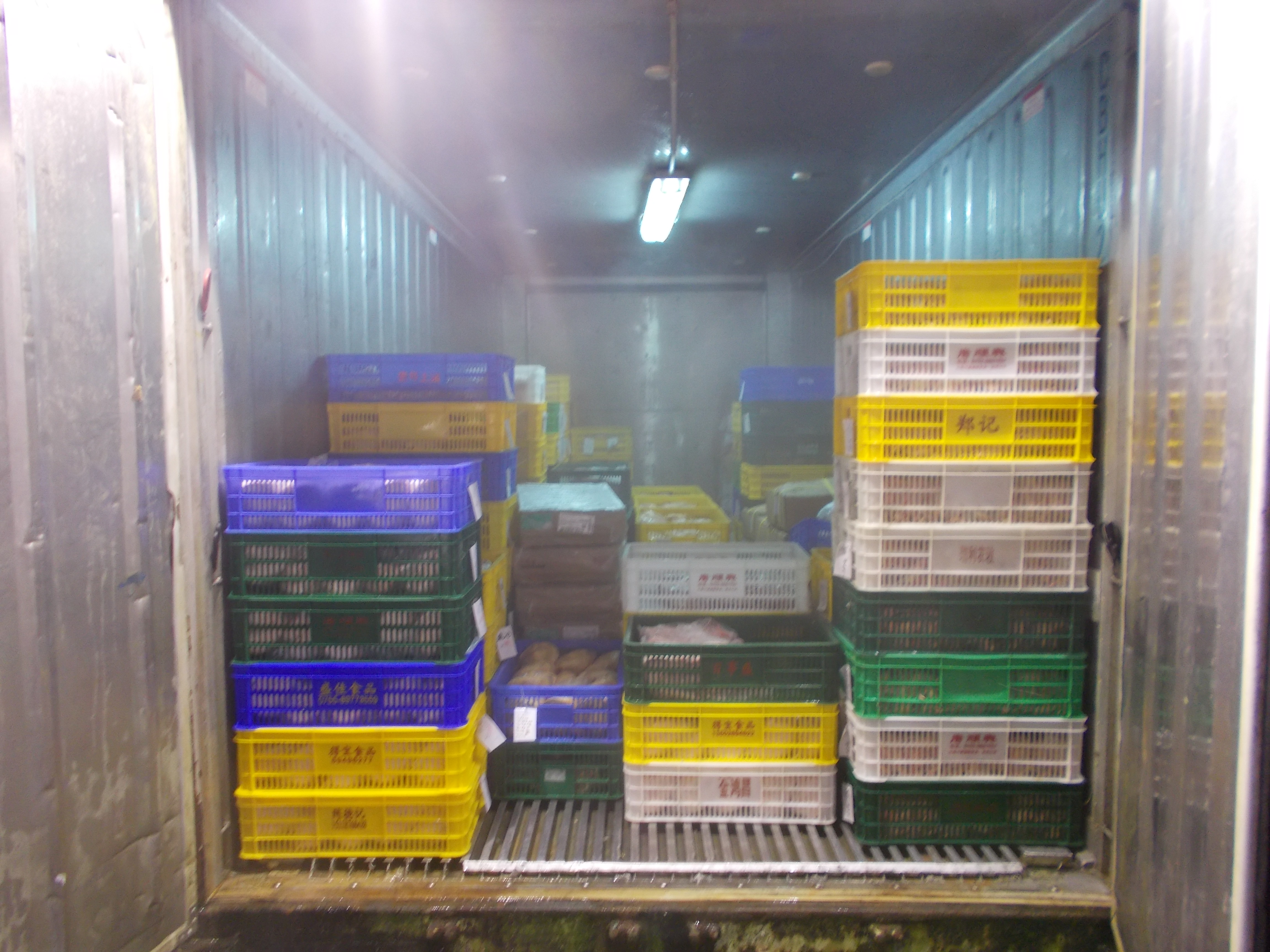 食環署今日(29日)清晨在北區沙頭角公路禾坑段搗破一個無牌凍房。行動中,食環署人員在該處所共搜獲約3400公斤附有衛生證明書的冰鮮家禽,另檢獲約170公斤沒有衛生證明書的冰鮮家禽內臟及冰鮮雞腳,並已銷毀。涉案被捕的61歲男子,被控經營無牌凍房。