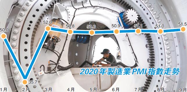 9月30日,國家統計局發布數據顯示,9月官方製造業PMI為51.5%,前值為51.0%;非製造業PMI為55.9%,前值55.2%。專家表示,9月PMI指數繼續擴大,創6個月新高,更值得注意的是小型企業重返擴張區間,表明對小型企業的一攬子有針對性幫扶政策持續顯效。未來,雖然經濟恢復仍然面臨着較大挑戰,但仍有望持續復蘇。
