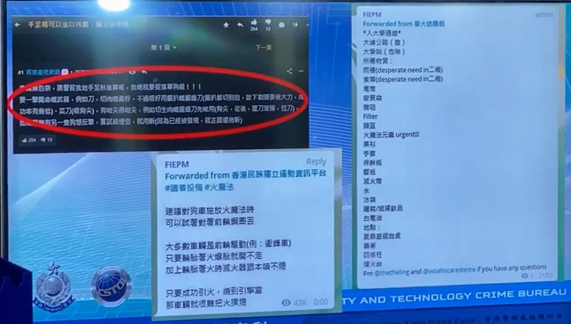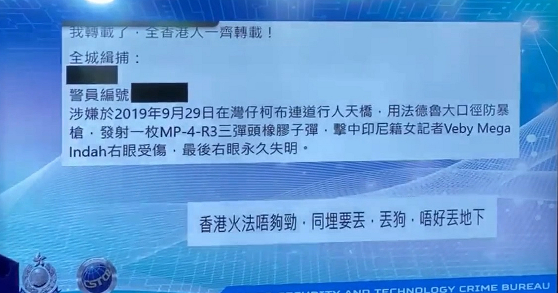 警方展示涉案的帖文,當中包括揚言要殺警。
