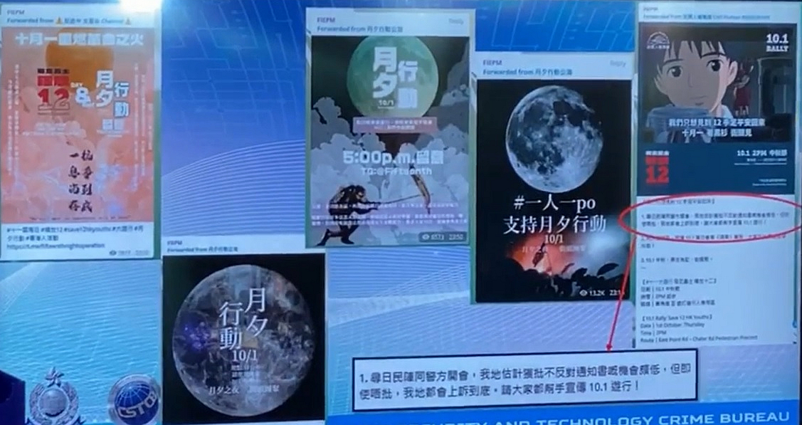 網絡安全及科技罪案調查科科技罪案組行動第2組主管范俊業總督察表示,最近網上煽惑他人犯法帖文仍未收斂,企圖重演過去一年暴力抗爭的場面。警方特別留意到有人在網上宣傳和鼓吹他人在10月1日參與未經批准的示威活動,進行堵路及刑事毀壞,甚至殺害警員,包括用刀割頸和火燒警車等。同時發現有人對一名警員起底,他和家人收到不同程度滋擾。