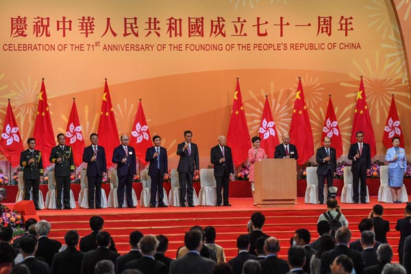 特區政府在金紫荊廣場舉行國慶升旗儀式。新華社
