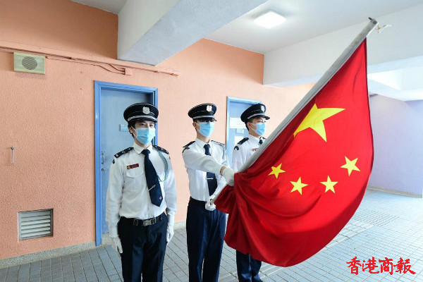 升旗儀式於禮堂內進行,早上10時由中學生組成的儀仗隊高舉國旗步操進入禮堂,再在旗杆上徐徐升起,一眾嘉賓昂然肅立,並歌唱國歌,整個儀式莊嚴而隆重。