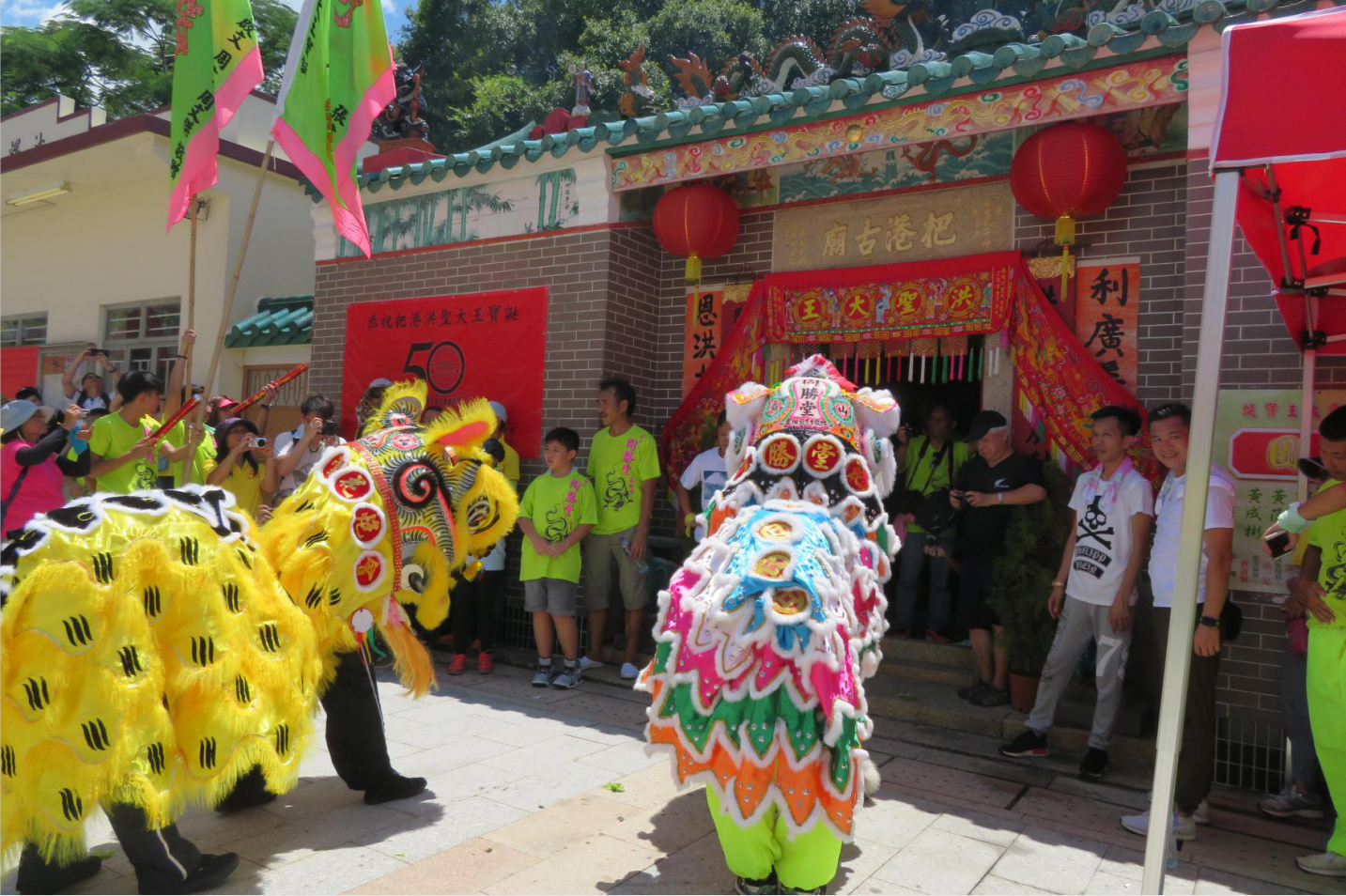 沙螺灣洪聖寶誕舉行期間,有花炮會醒獅叩拜把港古廟。這儀式今年因疫情取消了。
