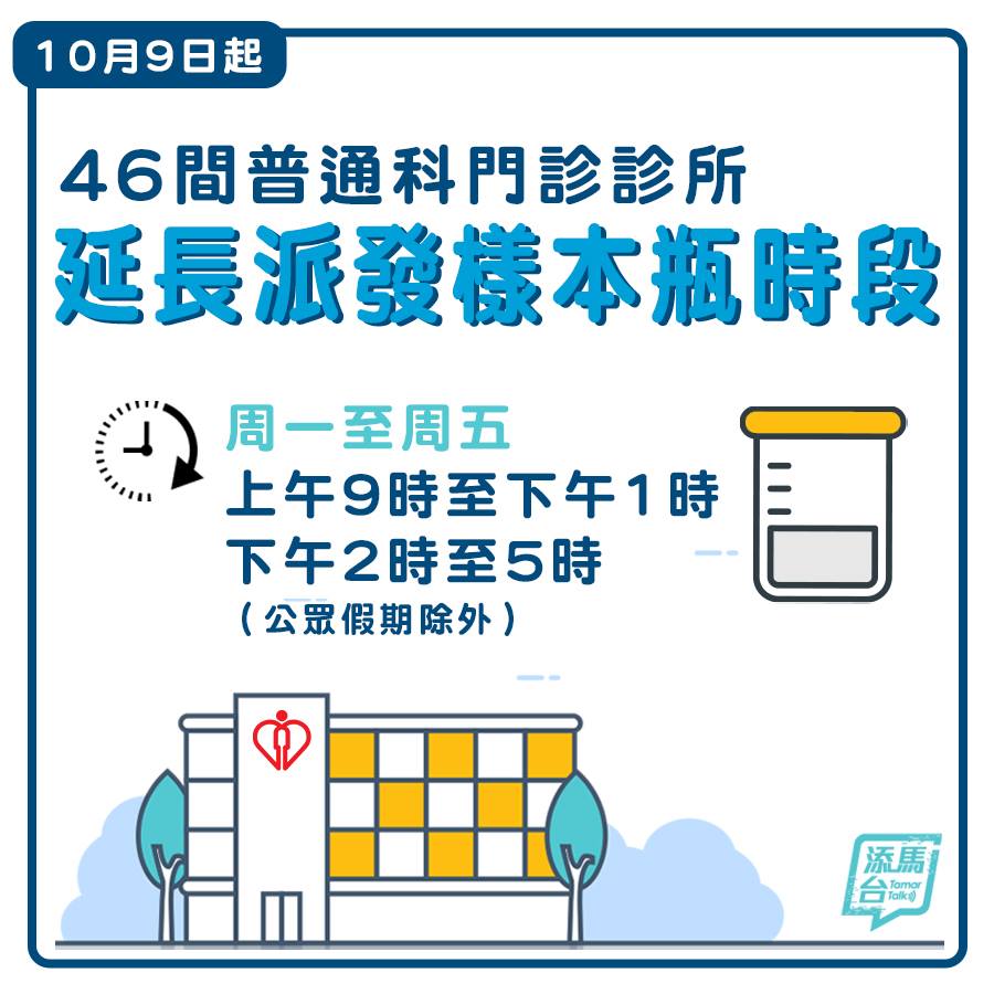 本港新冠肺炎疫情反覆,醫管局昨日宣布,由今日(9日)開始,普通科門診診所派發樣本收集包的時段將會優化,方便一些自覺有較高感染風險及輕微不適的市民,領取樣本收集包,並接受新冠病毒檢測服務。