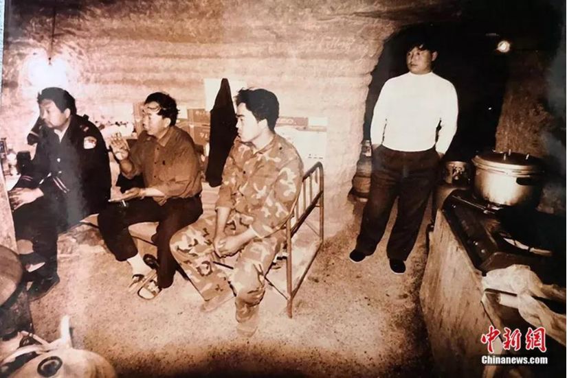 雅丹窯洞派出所建立之初,李生壽與同事一起在派出所內(來源:中國新聞網)